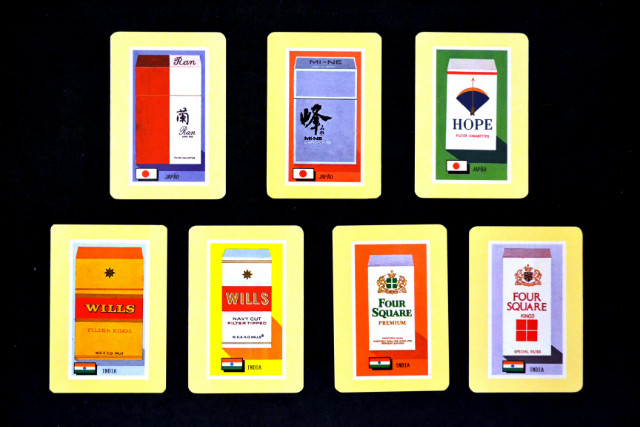 Imagens de maços de tabaco e charutos de países europeus, americanos, asiáticos e africanos.